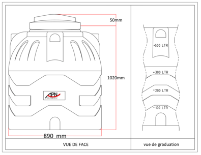 Pour avoir une meilleure Idée du volume à stocker une graduation visible et logique a été faite tout au long de la hauteur de la cuve.