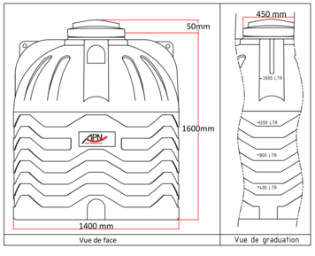 Pour avoir une meilleure Idée du volume à stocker une graduation visible et logique a été faite tout au long de la hauteur de la cuve.