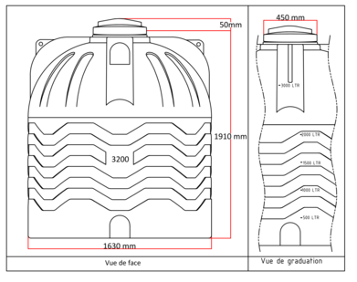 Pour avoir une meilleure Idée du volume à stocker une graduation visible et logique a été faite tout au long de la hauteur de la cuve.